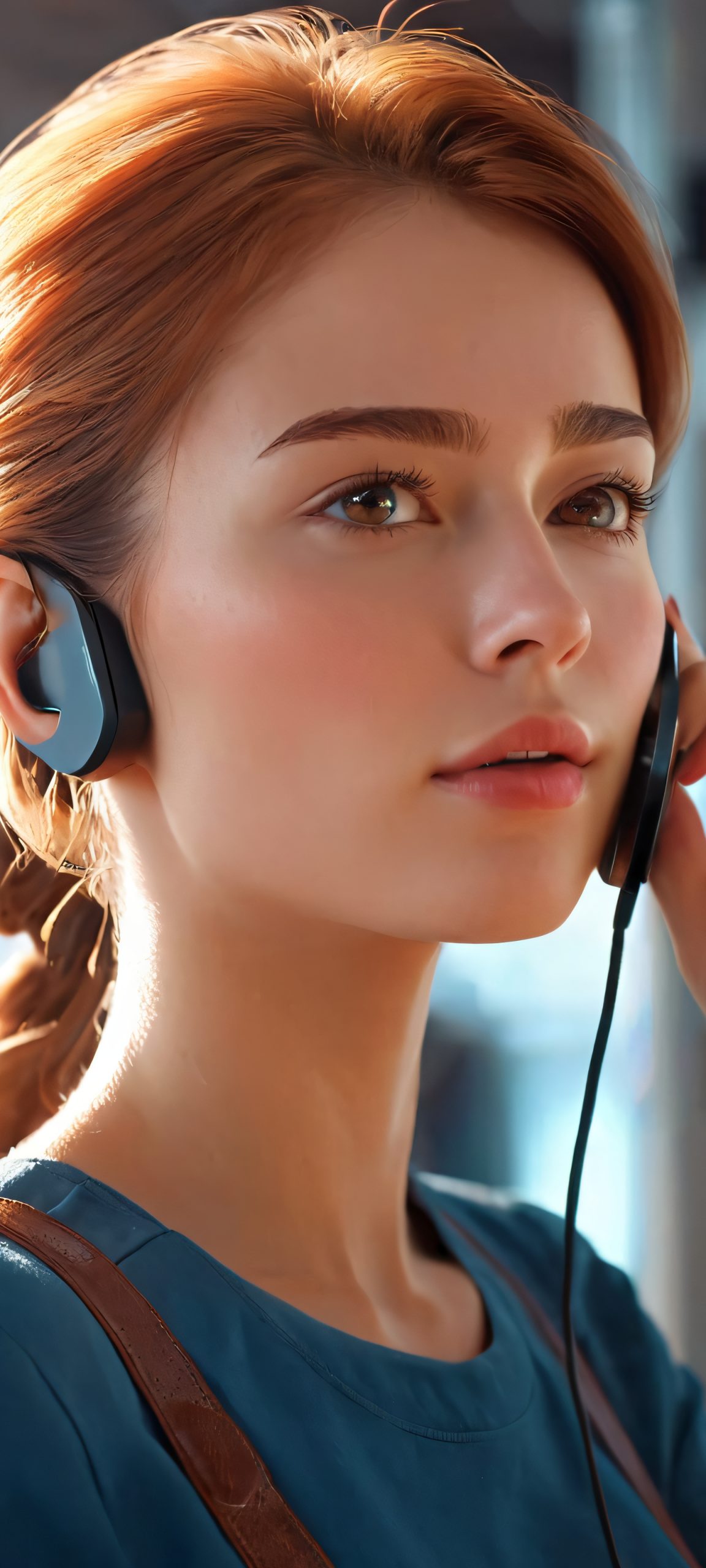 A serene woman standing at a station platform, surrounded by soft natural light. Perfect for your iPhone/Android home screen.