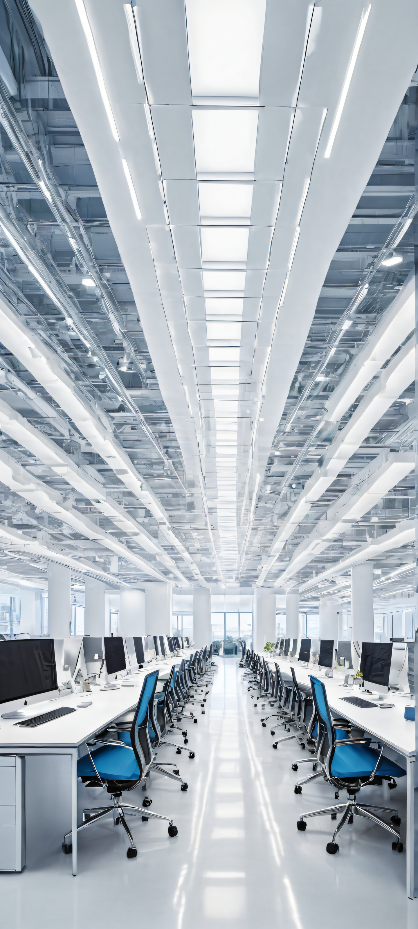 A breathtaking vertical portrait artwork of Colleagues and clients placed in the lower-middle, intricate micro-details revealing their work styles and personalities., A perfectly clean and empty top half with vast pure void, giving way to a detailed illustration of various professionals in the lower half, each surrounded by subtle hints at their respective industries., Award-winning digital art, pristine clarity with a focus on texture and scale reminiscent of Apple UI design standards., Ethereal lighting casting a soft glow, highlighting the subjects’ profiles and workspaces while maintaining an airy and bright atmosphere., A palette dominated by calming blues (#4567b7) and whites (#ffffff), accented with pops of vibrant colors (#34a85c, #f7dc6f, #e8d4c9) reflecting the diverse personalities and industries represented., ethereal lighting, radiant, brilliant colors, ray traced reflections, pristine clarity, portrait composition, centered subject in the lower middle, perfectly clean and smooth top half for UI, extreme depth of field blurred background, highly textured surfaces, intricate micro-details, physically based rendering, award-winning digital art, epic breathtaking scale, stunning visual impact, perfect composition, macOS wallpaper aesthetic, masterpiece, 2K QHD resolution, 9:20 aspect ratio.