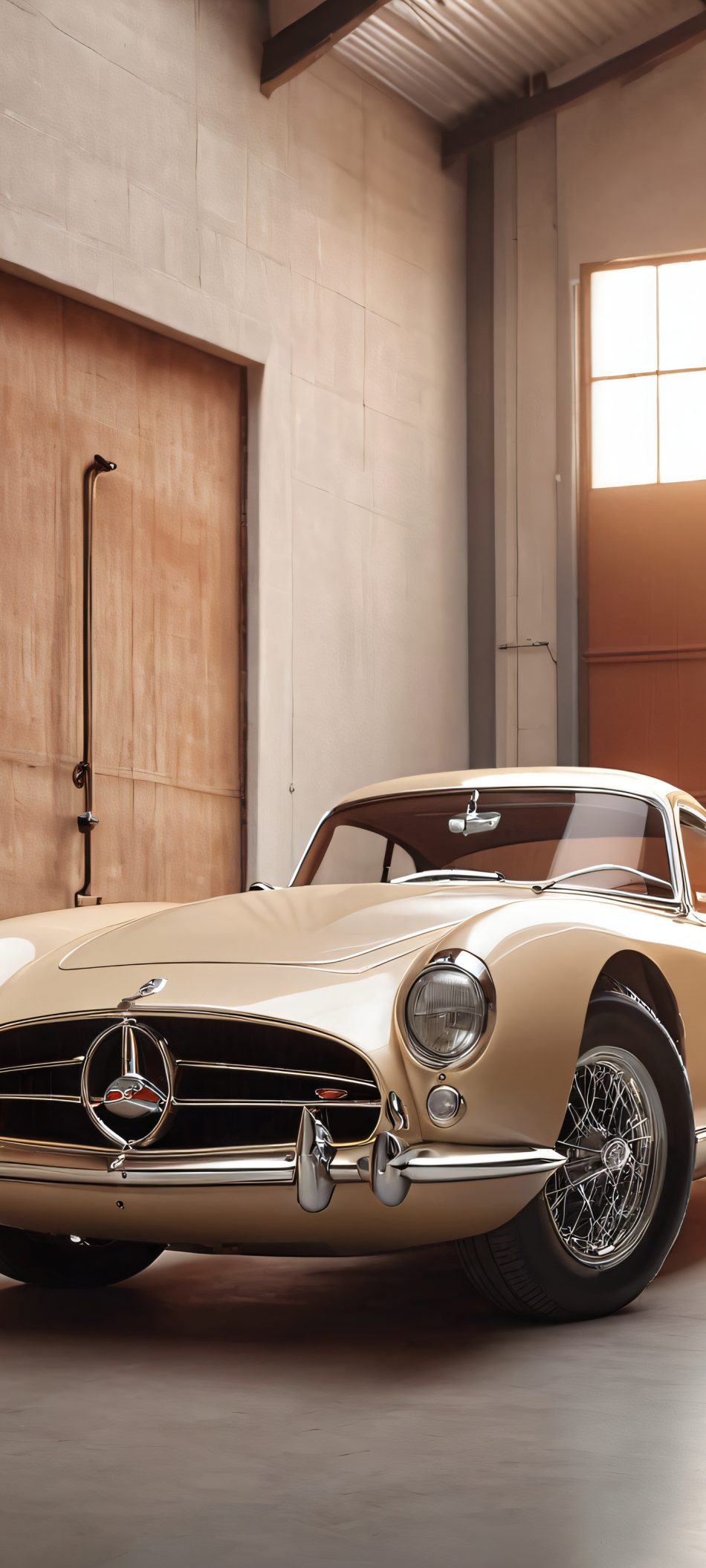 Immerse yourself in this breathtaking 2K QHD masterpiece, expertly designed to perfectly optimize for iPhone, Samsung Galaxy, and Android home screens. The warm beige, metallic silver, and rich brown hues evoke a sense of nostalgia and elegance, making it a must-have for any motorsport enthusiast’s mobile wallpaper collection.