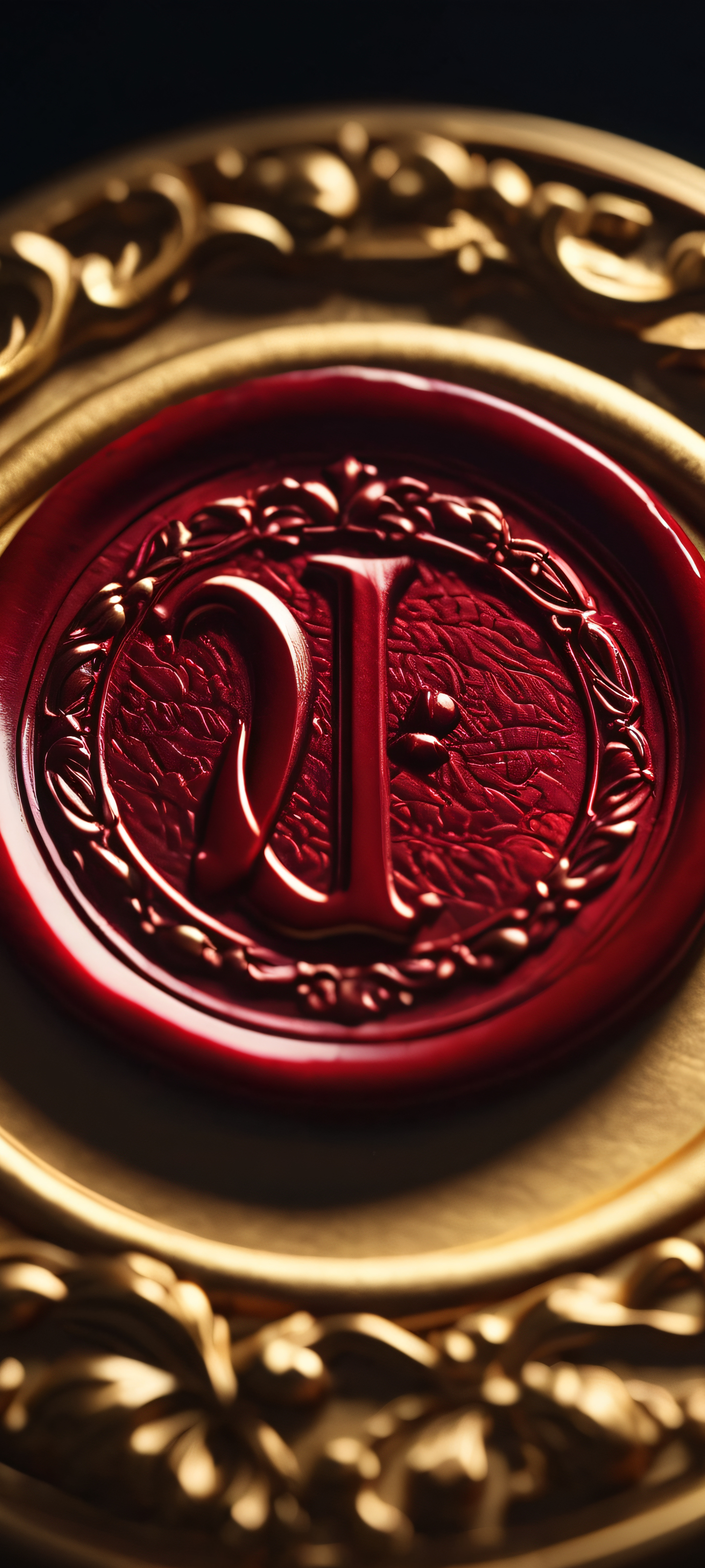 A stunning vertical mobile phone wallpaper of a letter wax seal with deep red and gold details, perfect for iPhone/Android home screens.