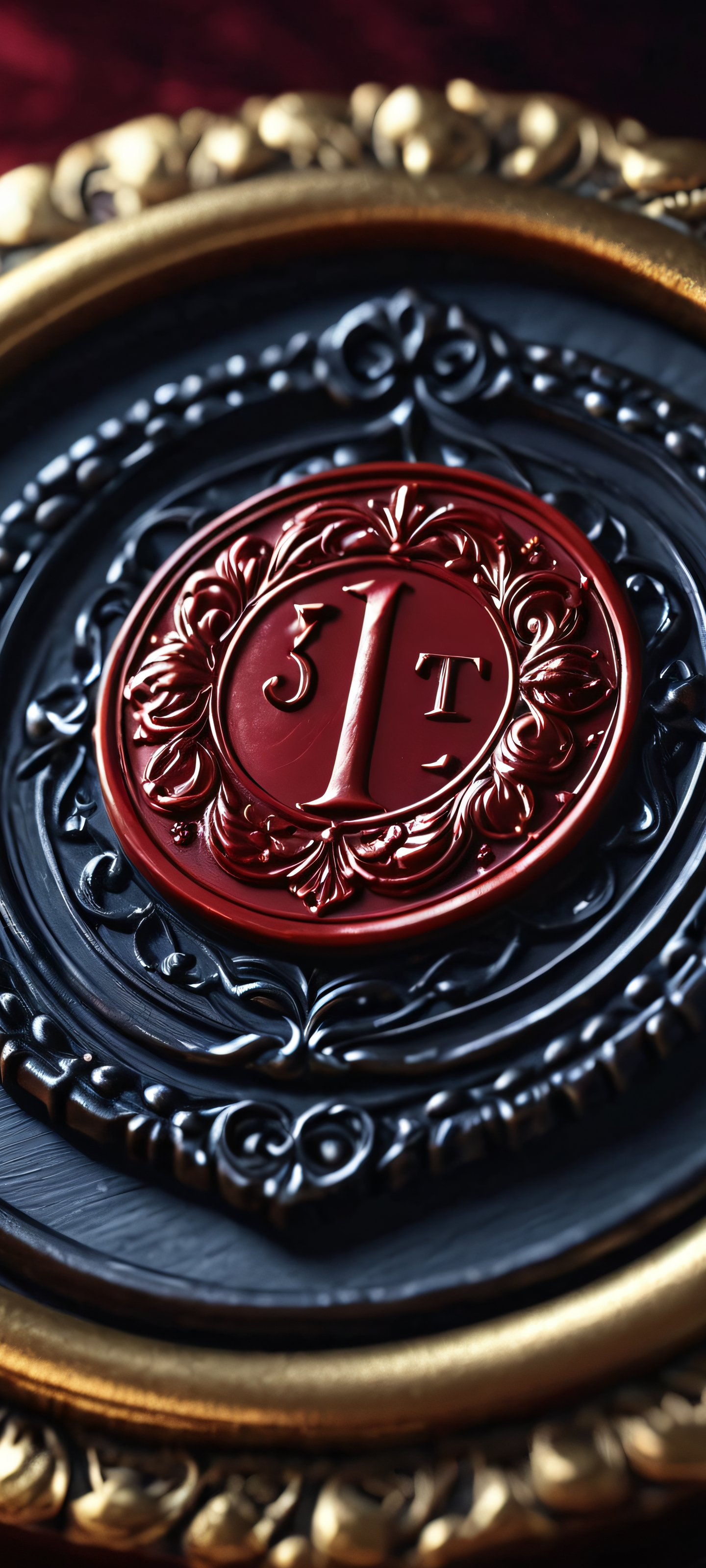 Close-up of a vintage wax seal on a dark background, perfectly suited for iPhone/Android home screens.