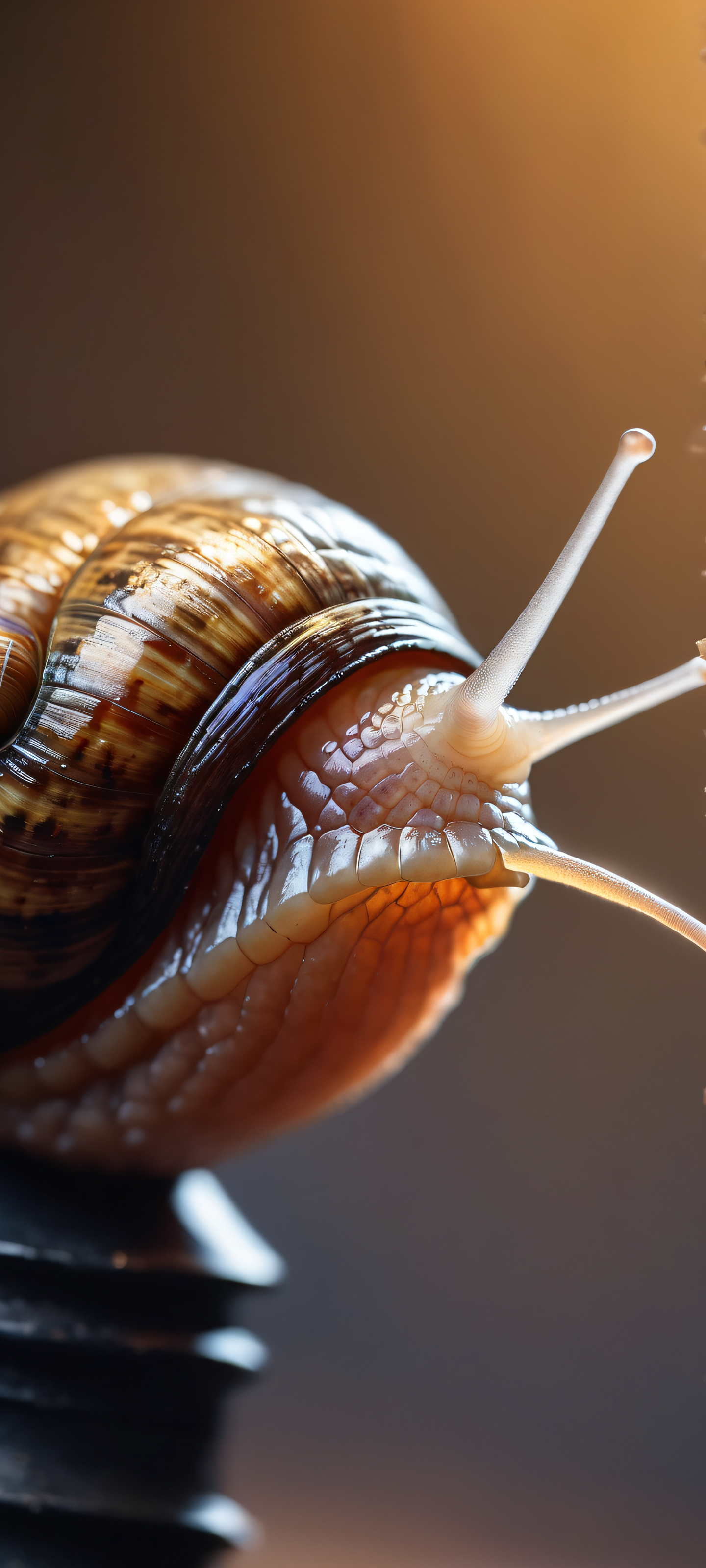 Elevate your mobile experience with this stunning digital artwork, expertly optimized for iPhone, Samsung Galaxy, and Android home screens. The breathtaking portrait composition features a centered snail subject in the lower middle, set against a pristine clean top half perfect for UI breathing space. With extreme depth of field and intricate micro-details, this masterpiece is sure to leave you in awe.