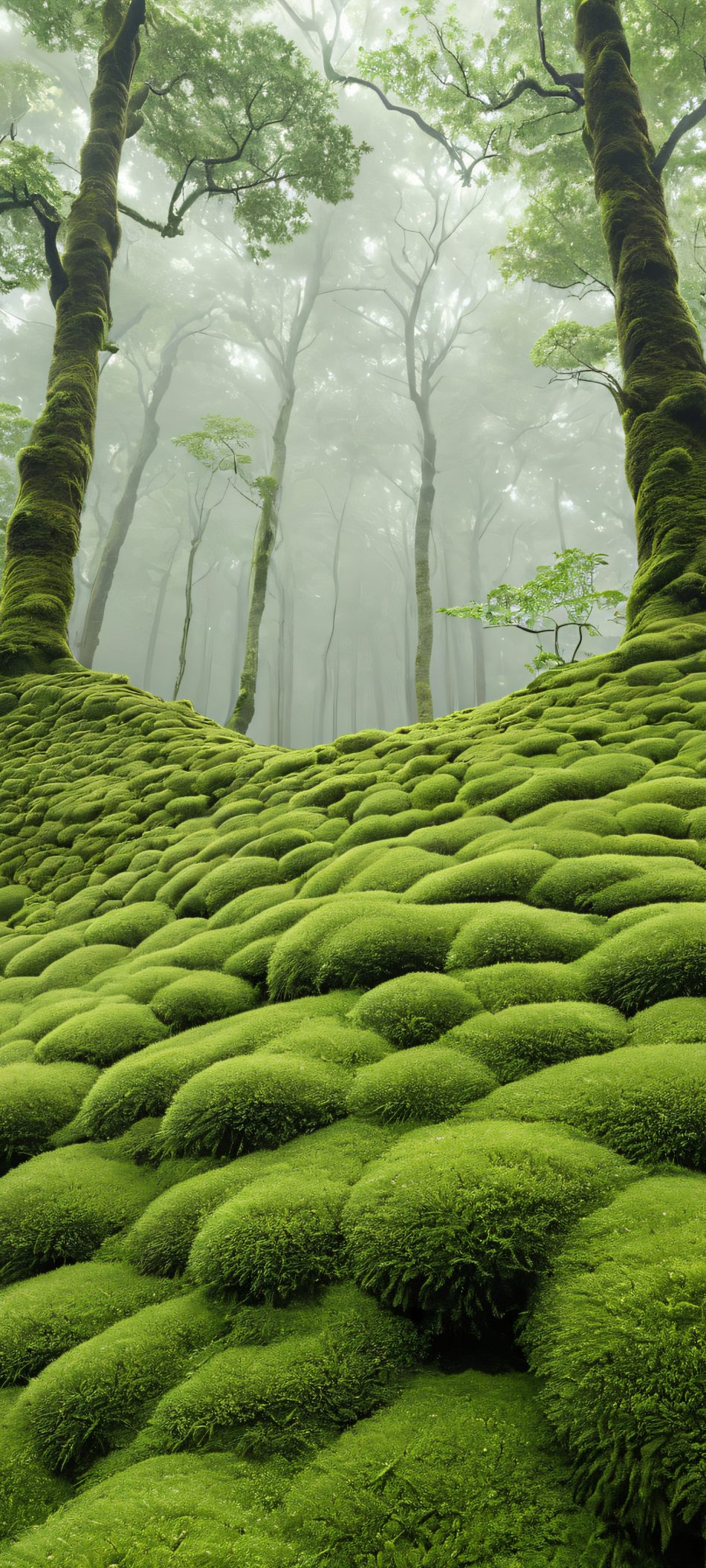 Immerse yourself in the serene atmosphere of this 2K QHD masterpiece, specifically optimized for iPhone, Samsung Galaxy, and Android home screens. The soft, grey hues of the forest treetops gently whisper secrets to the misty evening, creating a peaceful ambiance that’s simply perfect for your mobile phone wallpaper.