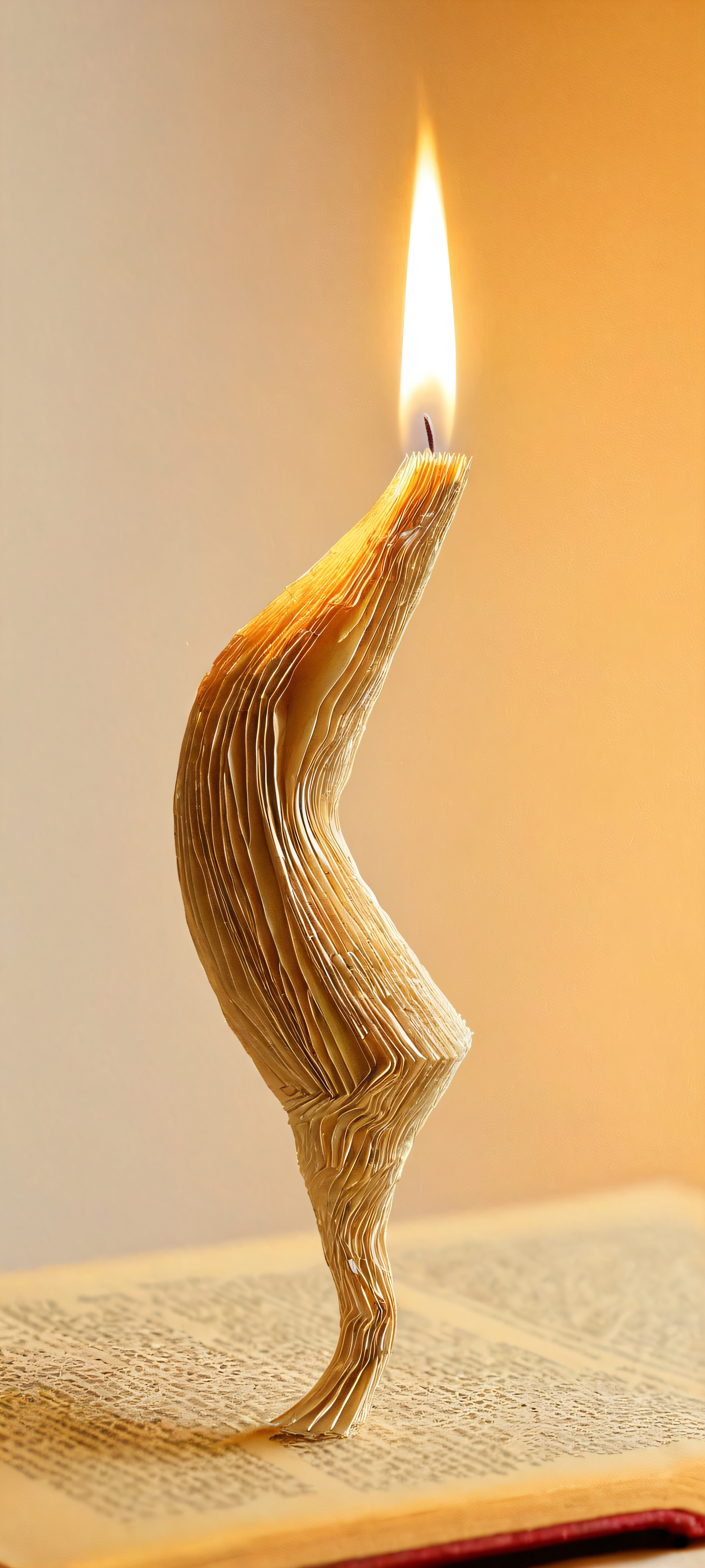 iPhone and Android users will love this whimsical wallpaper featuring a delicate paper fiber figure illuminated by soft candlelight, reminiscent of ancient tomes.