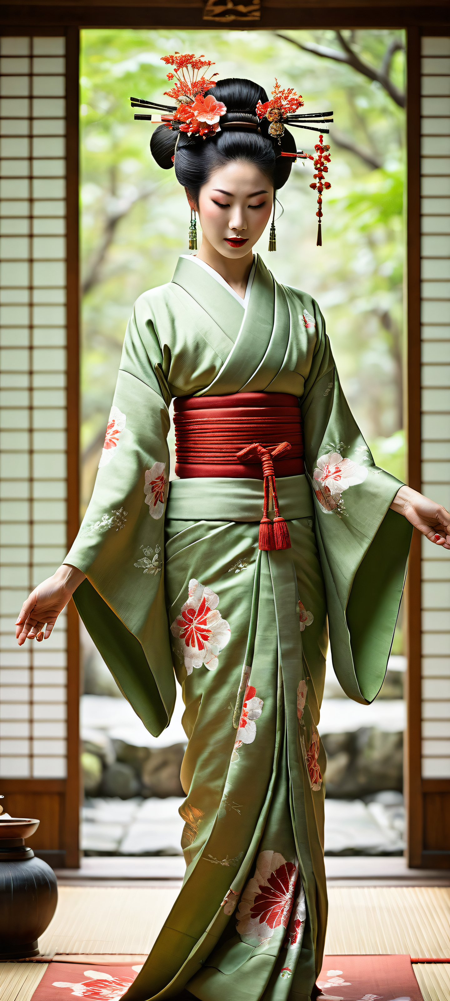 Immerse yourself in this breathtaking digital art piece, perfectly optimized for iPhone, Samsung Galaxy, and Android home screens. The serene atmosphere of the traditional Japanese tea ceremony unfolds before your eyes, with exquisite attention to detail and stunning visual impact.