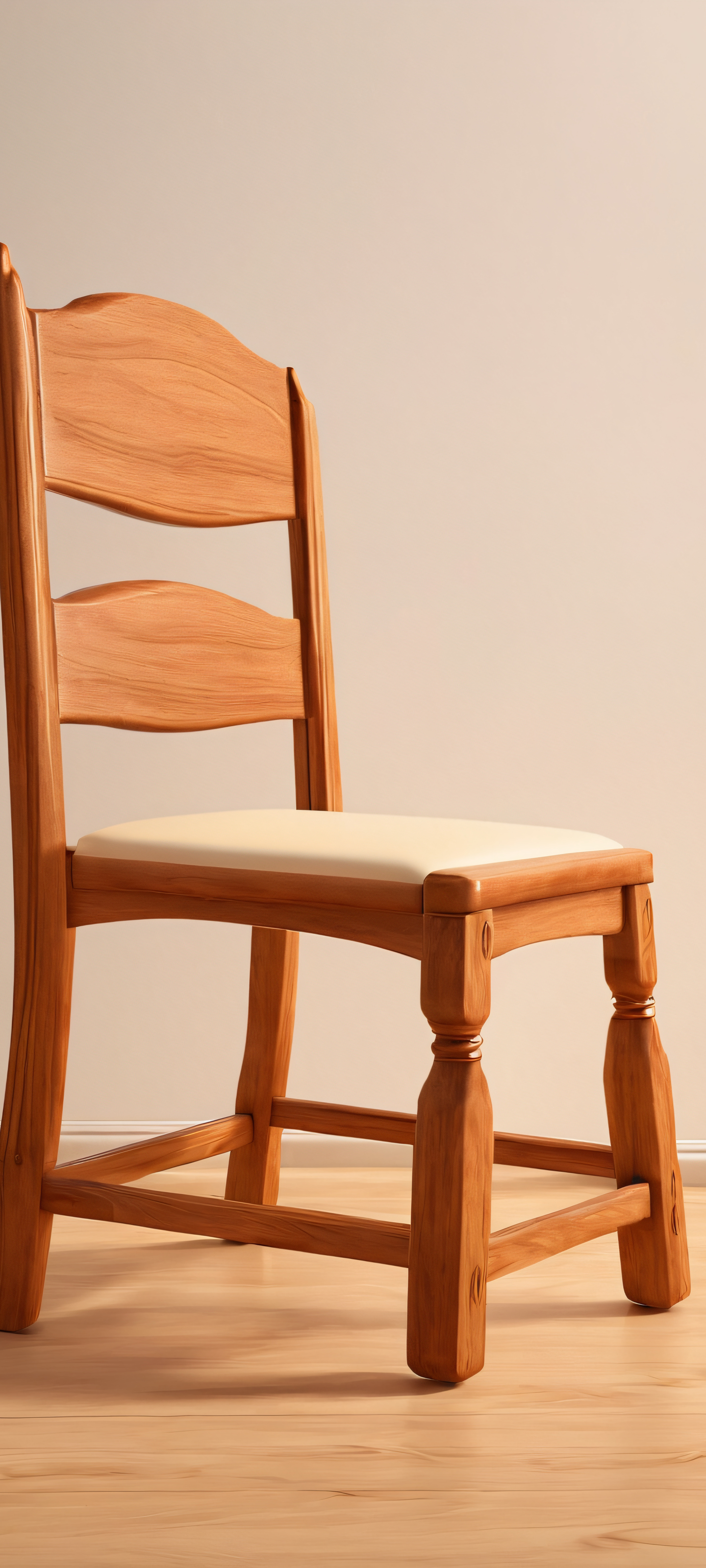 Beautiful wooden chair in a cozy indoor setting, perfectly suited for iPhone and Android screens.