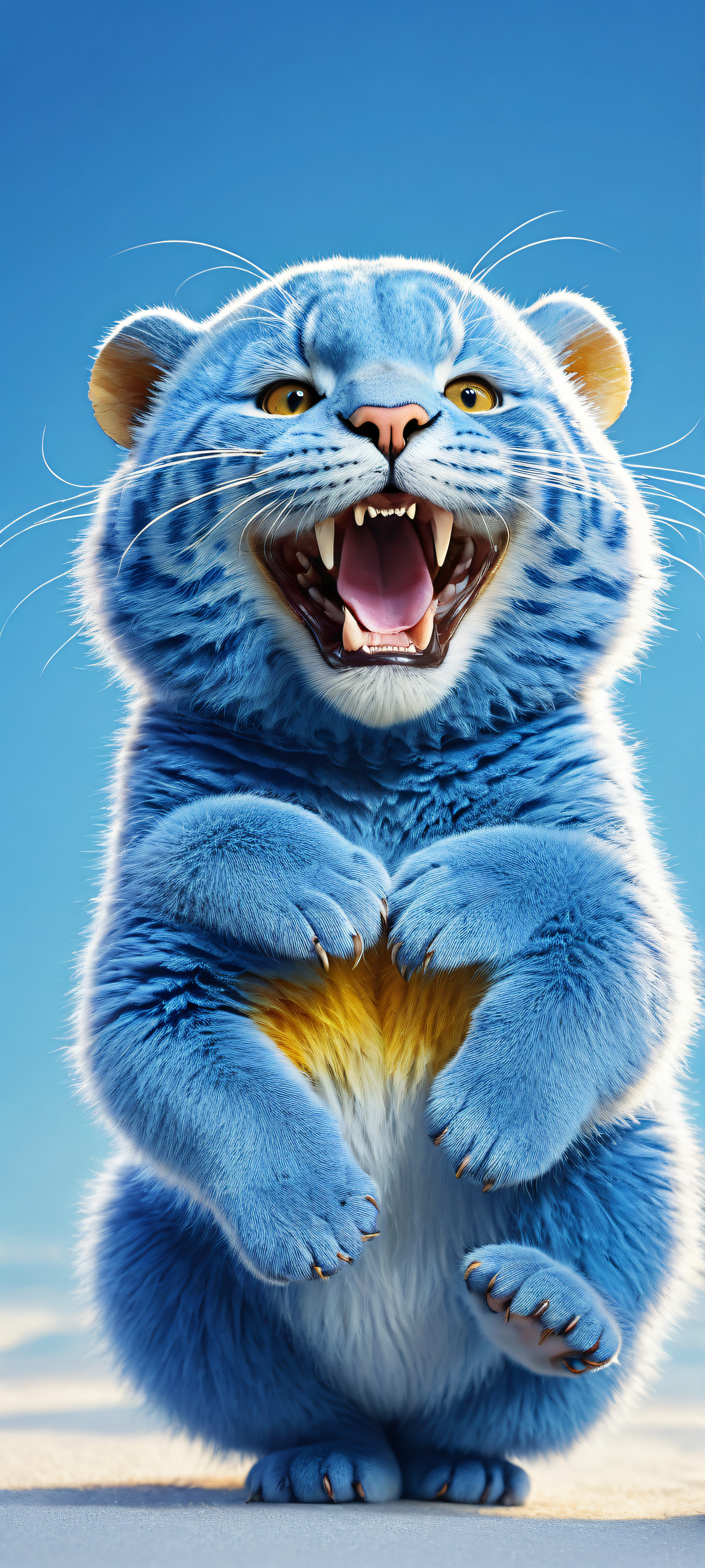 A breathtaking vertical portrait artwork of Wubbzy placed in the lower-middle with intricate micro-details of its smiling face and running tail, Perfectly clean and empty top half with vast pure void, a blue background that sets the tone for a sense of calmness, Award-winning digital art with pristine clarity, boasting stunning visual impact, Ethereal softbox lighting with radiant, brilliant colors, ray-traced reflections, and impeccable clarity, Dominant blue hues with touches of bright whites and warm yellows to create an uplifting mood, ethereal lighting, radiant, brilliant colors, ray traced reflections, pristine clarity, portrait composition, centered subject in the lower middle, perfectly clean and smooth top half for UI, extreme depth of field blurred background, highly textured surfaces, intricate micro-details, physically based rendering, award-winning digital art, epic breathtaking scale, stunning visual impact, perfect composition, macOS wallpaper aesthetic, masterpiece, 2K QHD resolution, 9:20 aspect ratio.